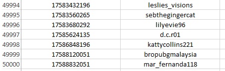 База данных пользователей социальной сети Instagram в формате "ID ; Username". Подойдет для ручной и автоматизированной раскрутки своего профиля.