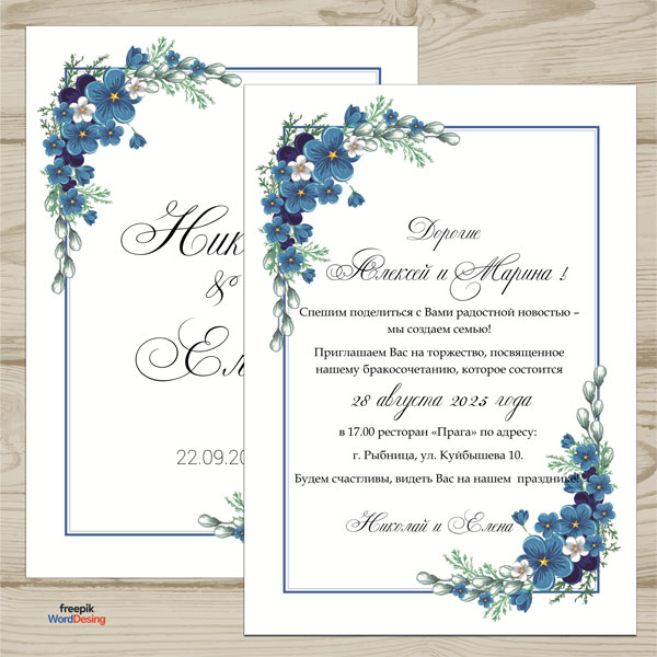 Красивый шаблон приглашения на свадьбу в формате Microsoft Word.Шаблон был сделан в программе Фотошоп и для удобства был переведен в Microsoft Word