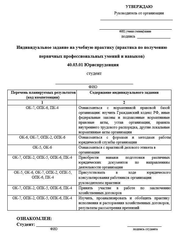 Индивидуальное задание на учебную практику (практика по получению первичных профессиональных умений и навыков) 40.03.01 Юриспруденция