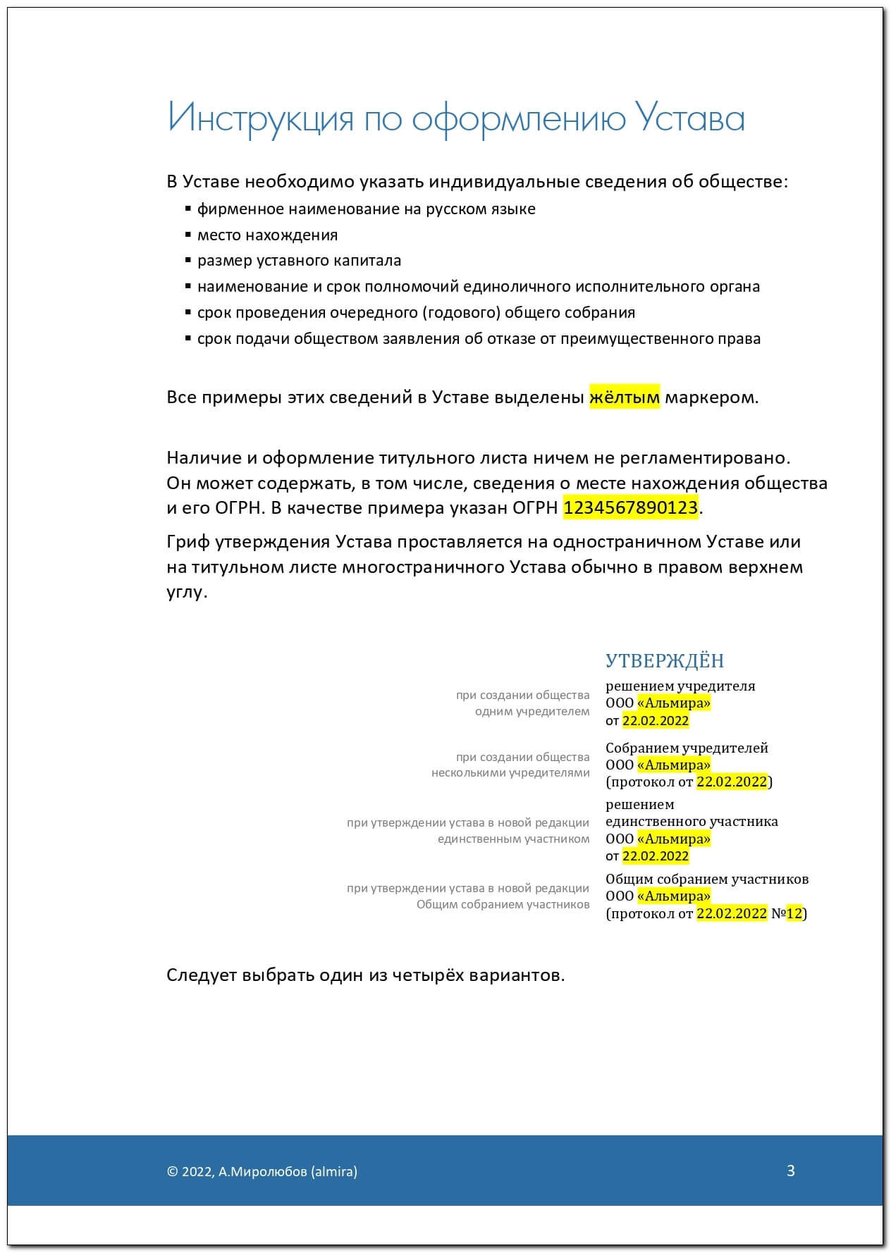 Устав ООО «Умный Сокол» — открытый компактный (5 страниц, включая титульный лист) универсальный Устав для обществ с одним учредителем или несколькими участниками без ограничений входа и выхода из общества.