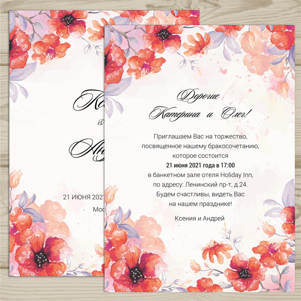 Макет приглашения был сделан в размере А4 (210х297 мм),Вы легко можете изменить размер на свой.