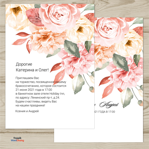 Красивый шаблон приглашения на свадьбу в формате Microsoft Word.Шаблон был сделан в программе Фотошоп и для удобства был переведен в Microsoft Word