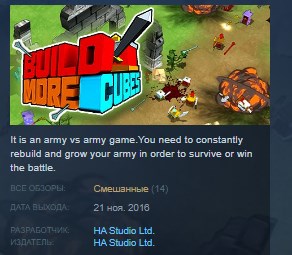 BuildMoreCubes combines real-time strategy battle gameplay with "Snake Byte" like end goals - to expand your army as much as you can by rebuilding dead enemy cubes.