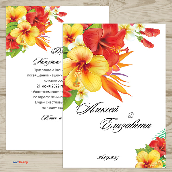 Красивый шаблон приглашения на свадьбу в формате Microsoft Word.Шаблон был сделан в программе Фотошоп и для удобства был переведен в Microsoft Word