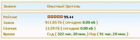 ► Звание на сайте: ОПЫТНЫЙ ЗРИТЕЛЬ, количество доступных раздач для скачивания с профиля за 1 сутки – 8 торрентов.