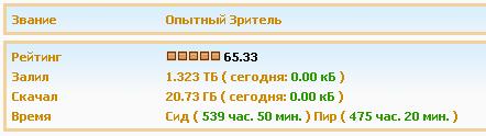 ► Звание на сайте: ОПЫТНЫЙ ЗРИТЕЛЬ, количество доступных раздач для скачивания с профиля за 1 сутки – 8 торрентов.