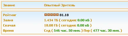 ► Звание на сайте: ОПЫТНЫЙ ЗРИТЕЛЬ, количество доступных раздач для скачивания с профиля за 1 сутки – 8 торрентов.