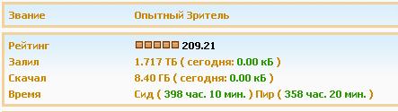 ► Звание на сайте: ОПЫТНЫЙ ЗРИТЕЛЬ, количество доступных раздач для скачивания с профиля за 1 сутки – 8 торрентов.