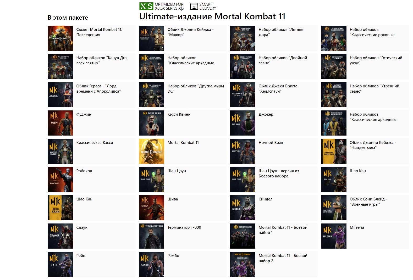 Включает MK11, Боевой набор 1, дополнение "Последствия" и Боевой набор 2.