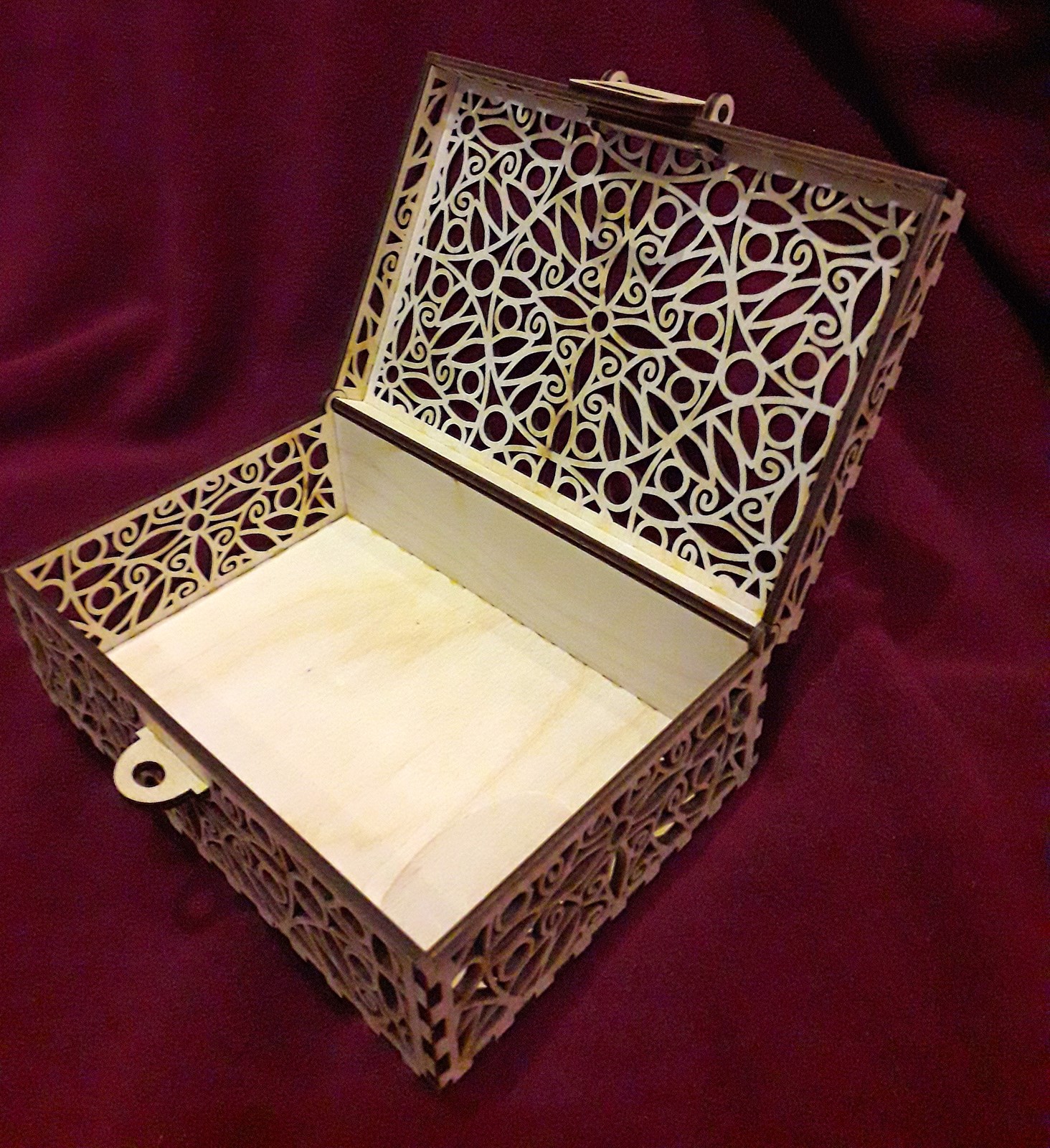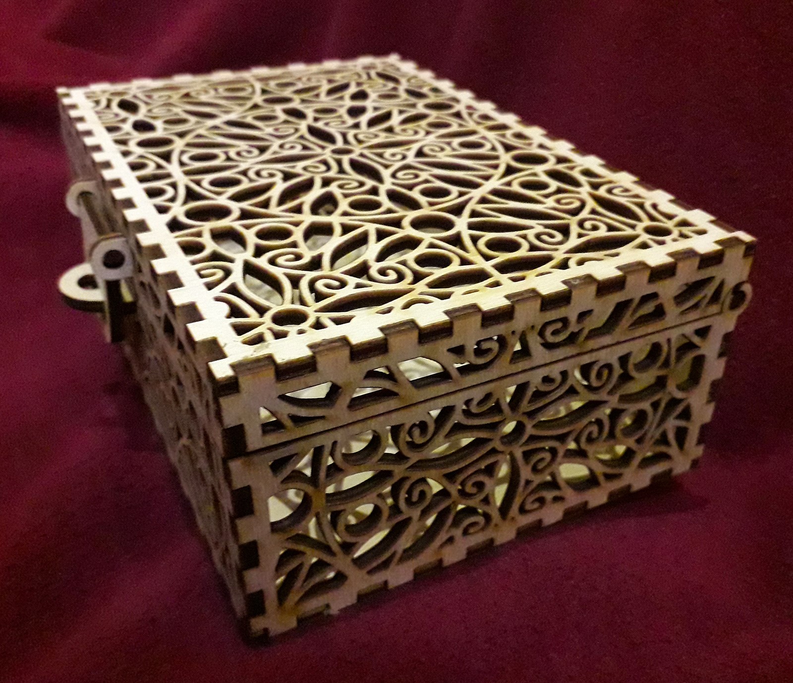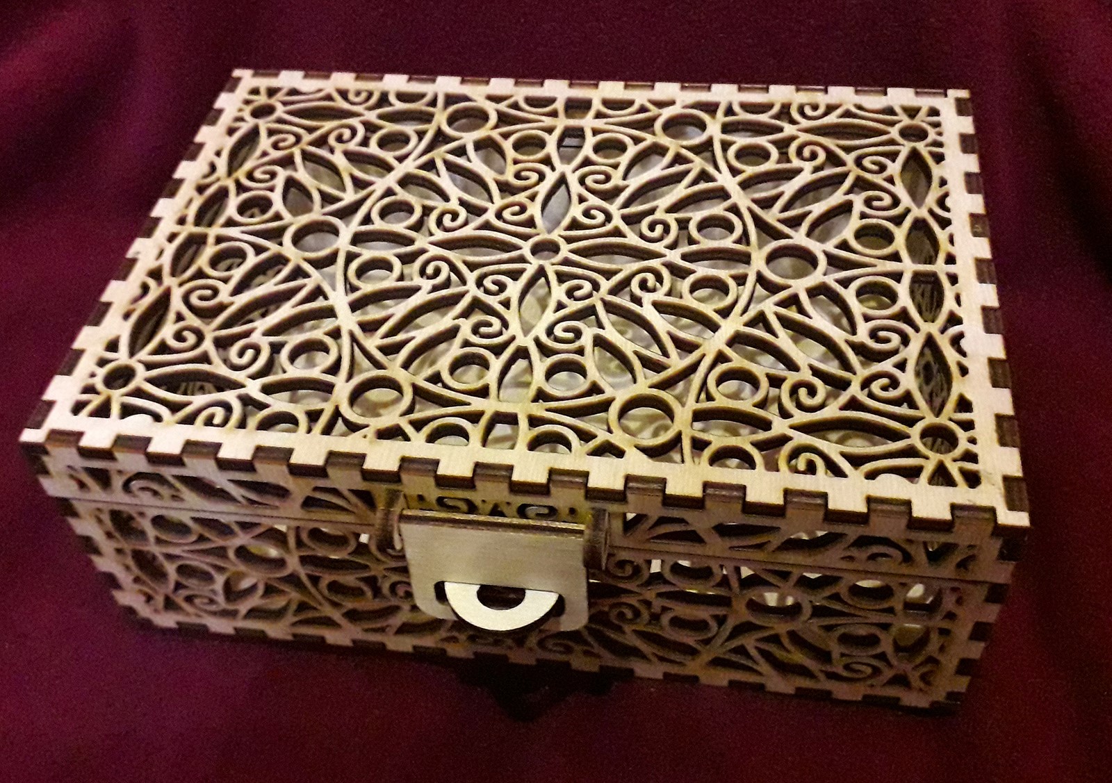 Узорная шкатулка для хранения драгоценностей или чего-нибудь другого. Это векторный макет для лазерного или фрезерного резака, подготовленный для толщины материала 3 и 4 мм.