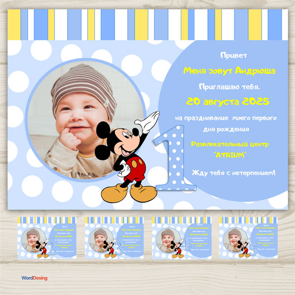 Приглашения на детский день рождения с фото в формате Microsoft Word.