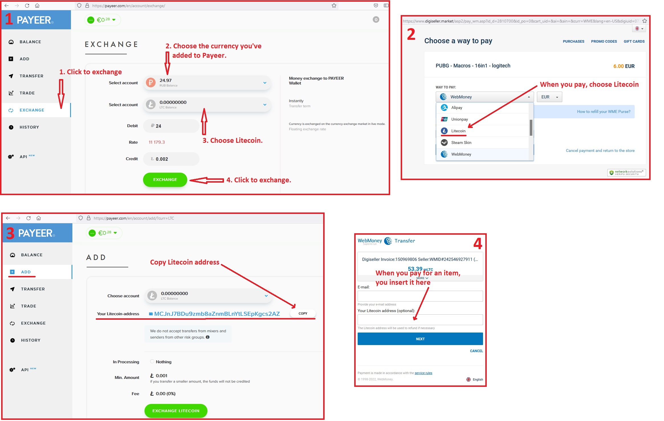 Внимание!!! Если у вас не получается оплатить банковской карточкой. То вам надо Litecoin и получить его легко: