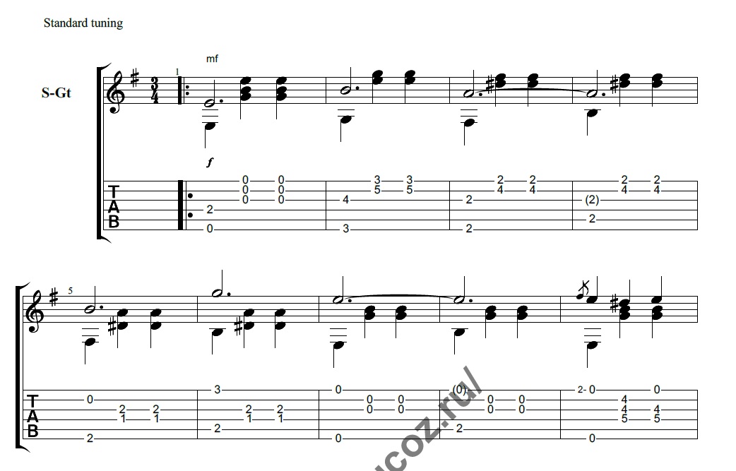 В состав товара входит нотная табулатура для 6-струнной гитары в формате .pdf на 6 листах.