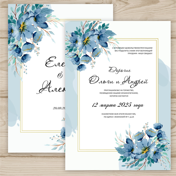 Макет приглашения был сделан в размере А4 (210х297 мм),Вы легко можете изменить размер на свой.