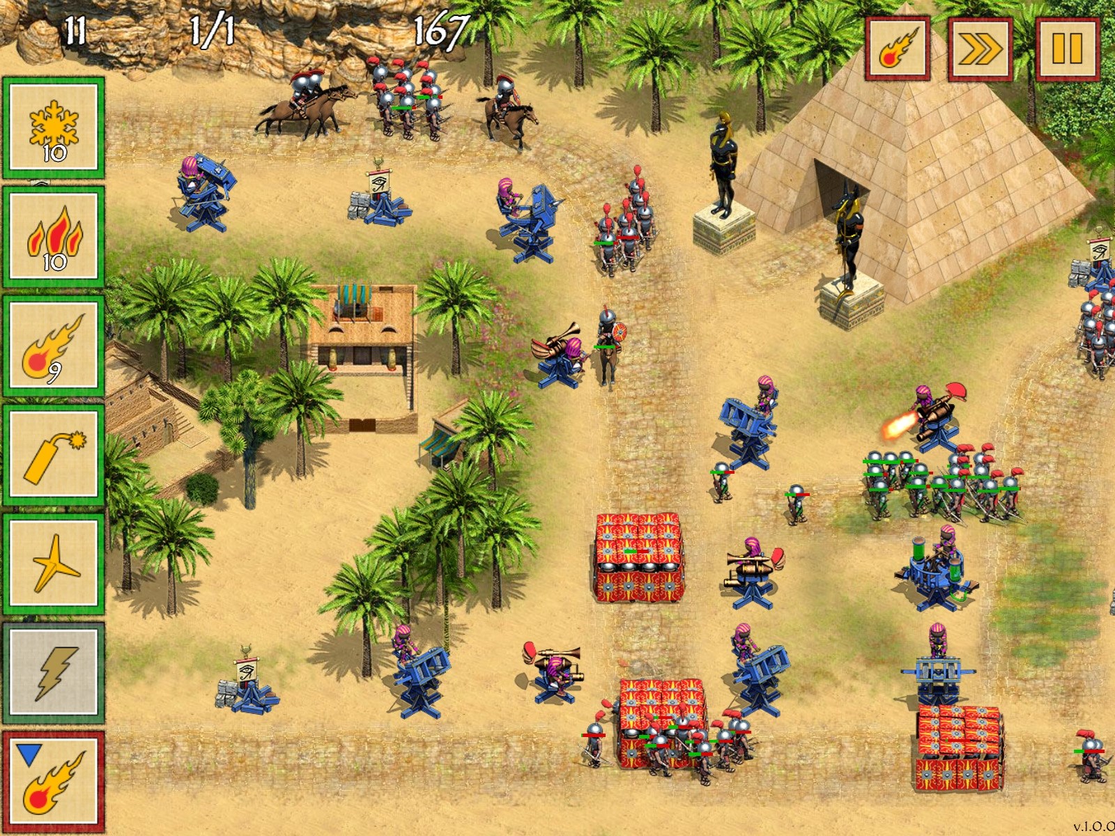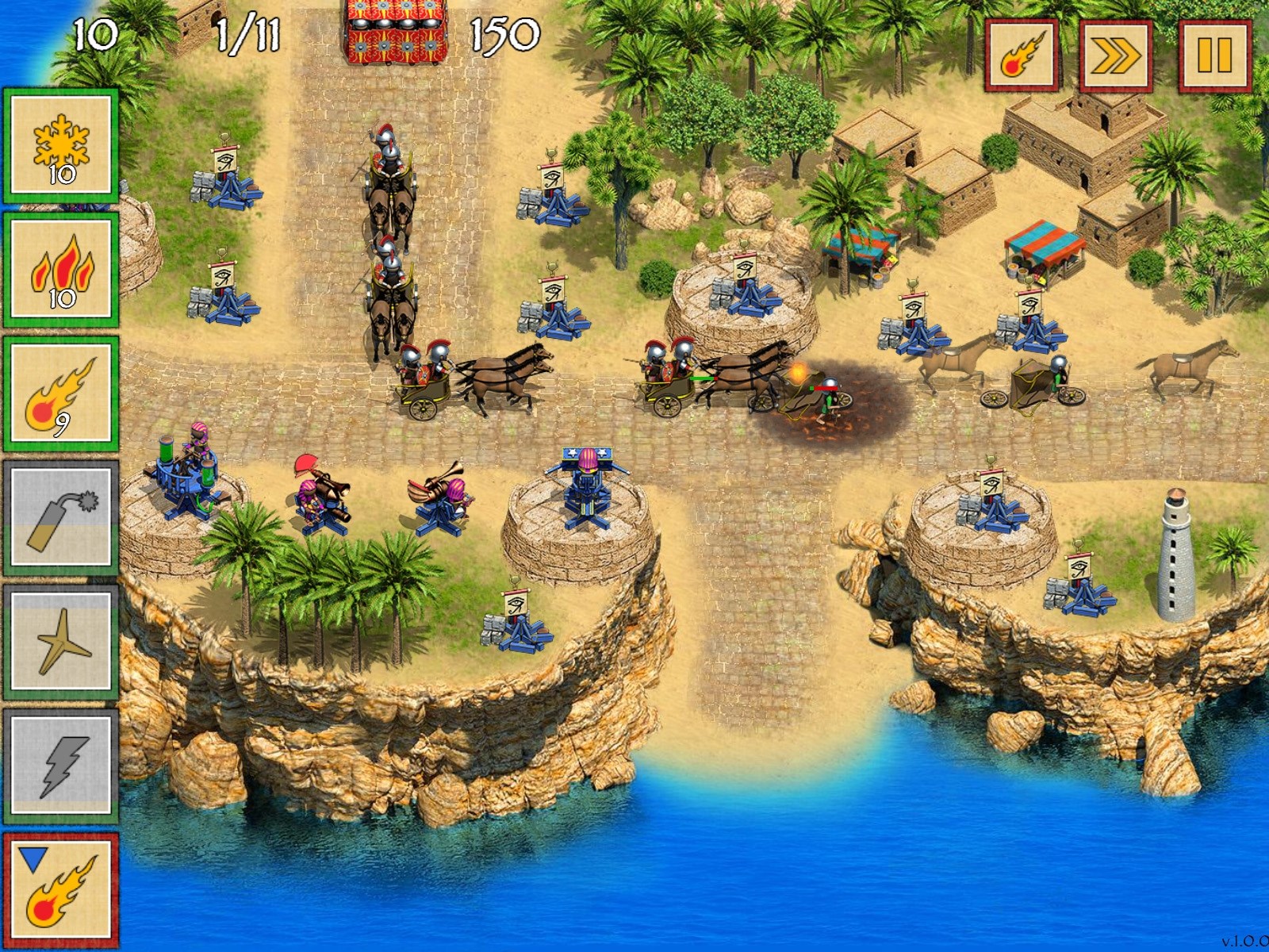 Увлекательная игра жанра "Tower Defense" ( TD ) в сеттинге древнего Египта.Красочная графика, увлекательный сюжет, интереснейший геймплей !Стройте мощные орудия, планируйте стратегию защиты. Грандиозные сражения с огромным количеством юнитов на уровнях. Множество тактик, разные уровни сложности прохождения. Уникальная система улучшений орудий и заклинаний . Эпическая битва Египта и Рима не оставит вас равнодушными.Тонкий расчет, быстрая реакция и помощь египетских Богов позволят вам отстоять независимость Египта, управляемого прекрасной Клеопатрой.