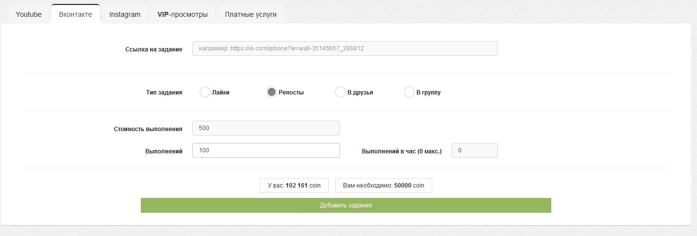 - привлечения лайков, репостов, подписчиков в друзья или группу ВКонтакте (vk.com);