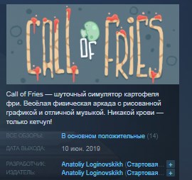 Call of Fries — шуточный симулятор картофеля фри. Весёлая физическая аркада с рисованной графикой и отличной музыкой.
