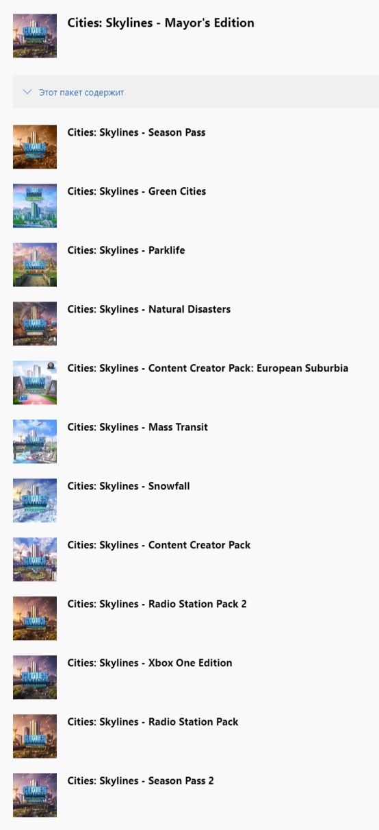 Вы МОЖЕТЕ получить всё вместе! Издание The Cities: Skylines Mayor имеет всё для того, чтобы игроки на консолях подняли свои градостроительные навыки на новые высоты. Наряду с базовой игрой в этот комплект входят самые популярные дополнения и наборы, включая весь контент Season Pass 1 и Season Pass 2.