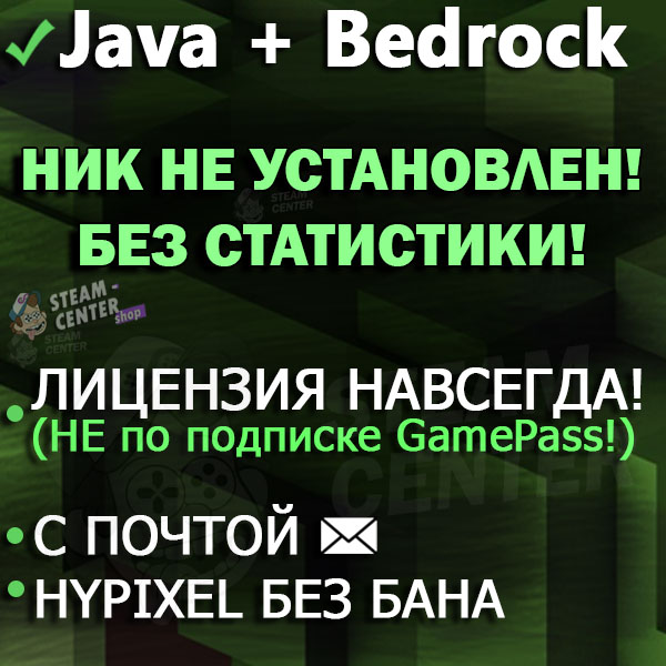 • Аккаунт с "Minecraft Java Edition + Bedrock Edition" (логин:пароль)