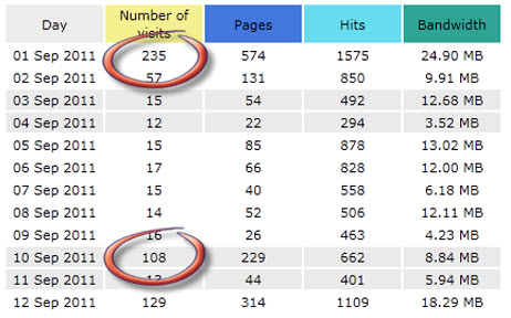 You’ll see that your site will have hundreds unique “visitors” for one or two days. There are not real visitors, but it’s means that other sites are fetching your site to gain informations to show in their pages with backlinks. (see images attached)