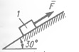 Каким должен быть вес тела 1, для того чтобы началось скольжение вверх по наклонной плоскости, если сила F = 90 Н, а коэффициент трения скольжения f = 0,3?