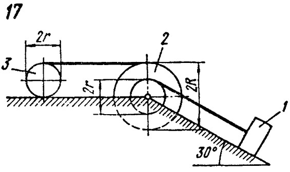Блоки и катки, для которых радиусы инерции в таблице не указаны, считать сплошными однородными цилиндрами.