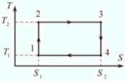 Определите КПД цикла, представленного на диаграмме T-S (где T – абсолютная температура, S – энтропия), если в пределах цикла абсолютная температура изменяется в 2 раза.