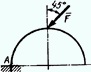 Арка, имеющая форму полуокружности, жестко заделана в точке А. Определить момент в заделке, если сила F = 100 Н.