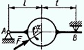 Стержень АВ жестко связан с диском. Определить в кН реакцию опоры В, если сила F = 24 кН, угол а = 30°.