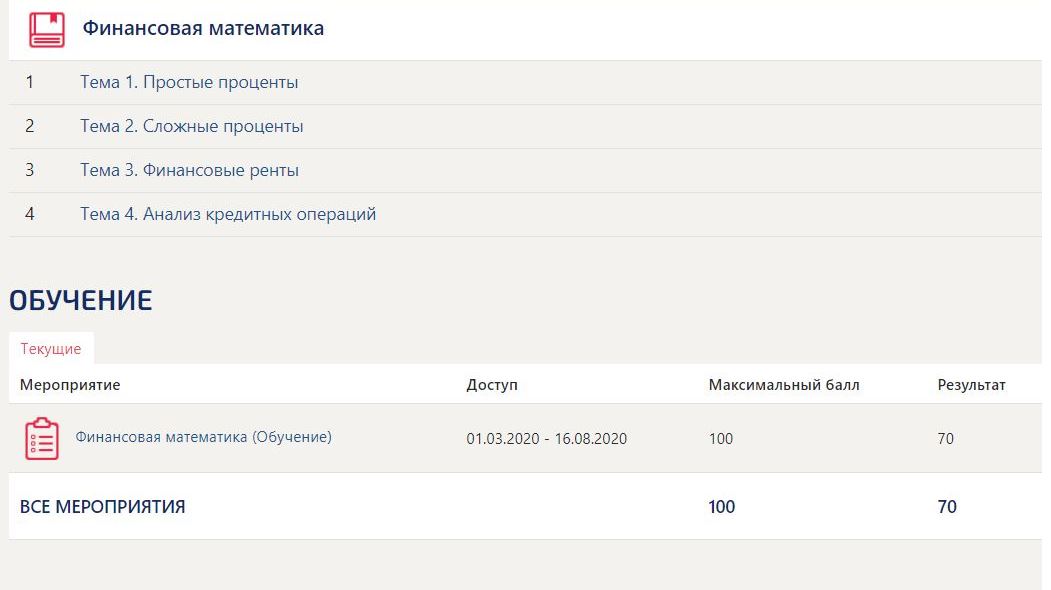 Финансовая математика (ответы на тесты Синергия) 30 вопросов оценка 70 баллов