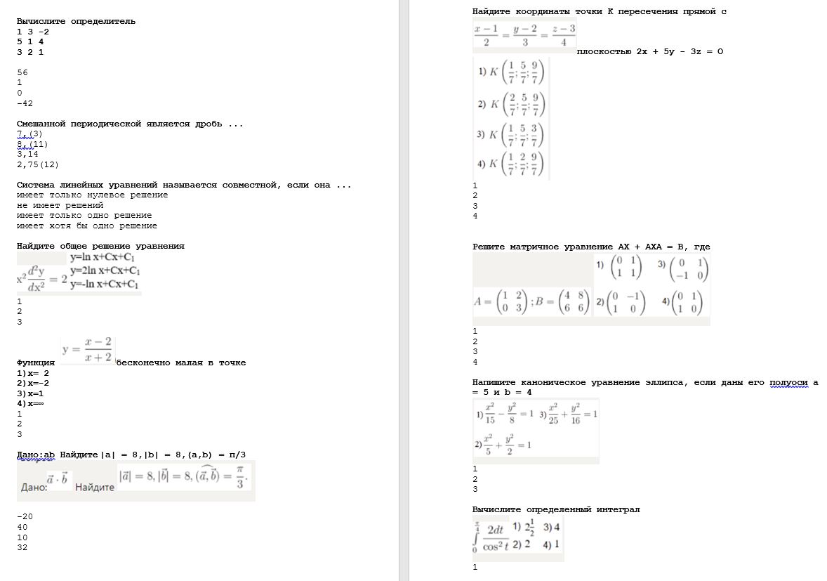 Математика Ответы 1 семестр Тест Синергия (90 баллов)