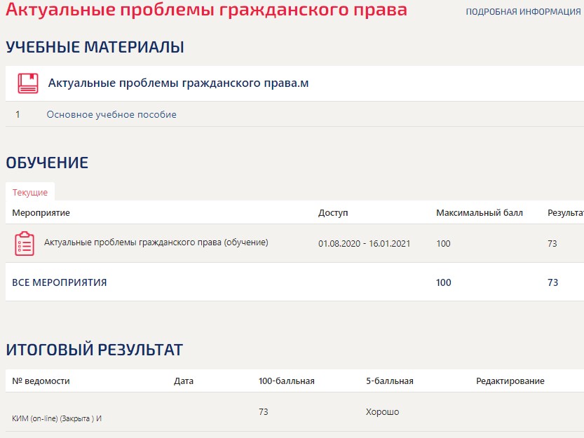 Тест сдан на Хорошо 73/100 баллов, оценка прилагается
