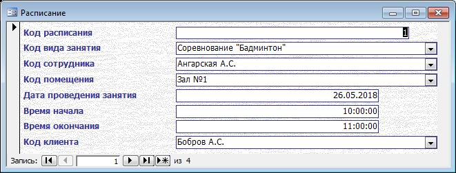 Аналитические возможности базы данных включают формирование следующих запросов и отчетов: информация о тренере; информация о клиенте; расписание по типу; расписание на дату.