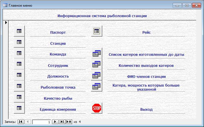База данных "Рыболовная станция" предназначена для автоматизации деятельности рыболовной станции. Позволяет обрабатывать информацию о рейсах, единицах измерения, качестве рыбы, рыболовной точке, должностях, сотрудниках, командах, станциях, паспортах.
