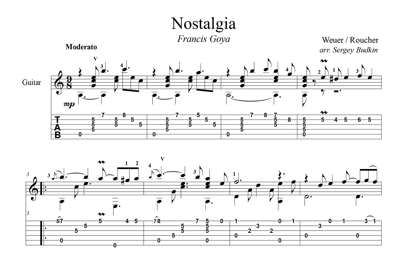 Аранжировка для гитары мелодии бельгийского гитариста Фрасиса Гойи.