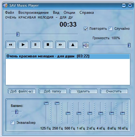 SAV Music Player – плеер, предназначенный для прослушивания звуковых файлов форматов