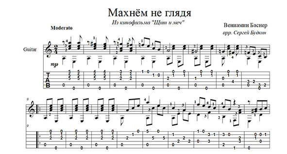 Аранжировка для гитары соло песни Вениамина Баснера из кинофильма "Щит и меч".