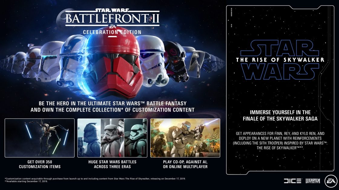Станьте героем самых фантастических сражений вселенной «Звёздных Войн™» в «Праздничном издании» для Star Wars™ Battlefront™ II II! Издание включает в себя копию игры Star Wars Battlefront II и полную коллекцию предметов для персонализации, которые можно приобрести в игре, — от контента, доступного со дня выхода игры, и до новинок по мотивам фильма «Звёздные Войны™: СКАЙУОКЕР. ВОСХОД™»*.