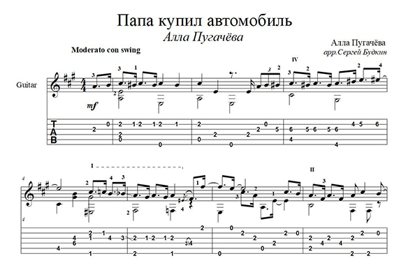 Аранжировка для гитары песни Аллы Пугачёвой.