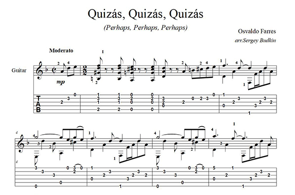 Аранжировка для гитары известной песни кубинского композитора Освальдо Фарреса.