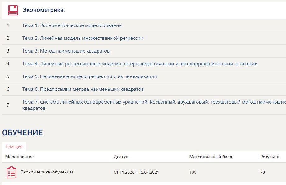 Эконометрика Синергия (ответы 73/100) Тесты. 30 вопросов. Оценка Хорошо