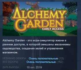 Alchemy Garden - это игра-симулятор жизни в раннем доступе, в которой смешаны механизмы садоводства, создания зелий и управления магазином.