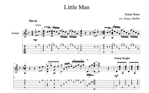 Аранжировка для гитары соло песни Сонни Боно из далеких 60-х.
