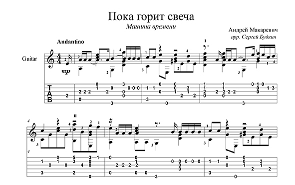 Аранжировка для гитары соло песни Андрея Макаревича в исполнении группы "Машина времени".