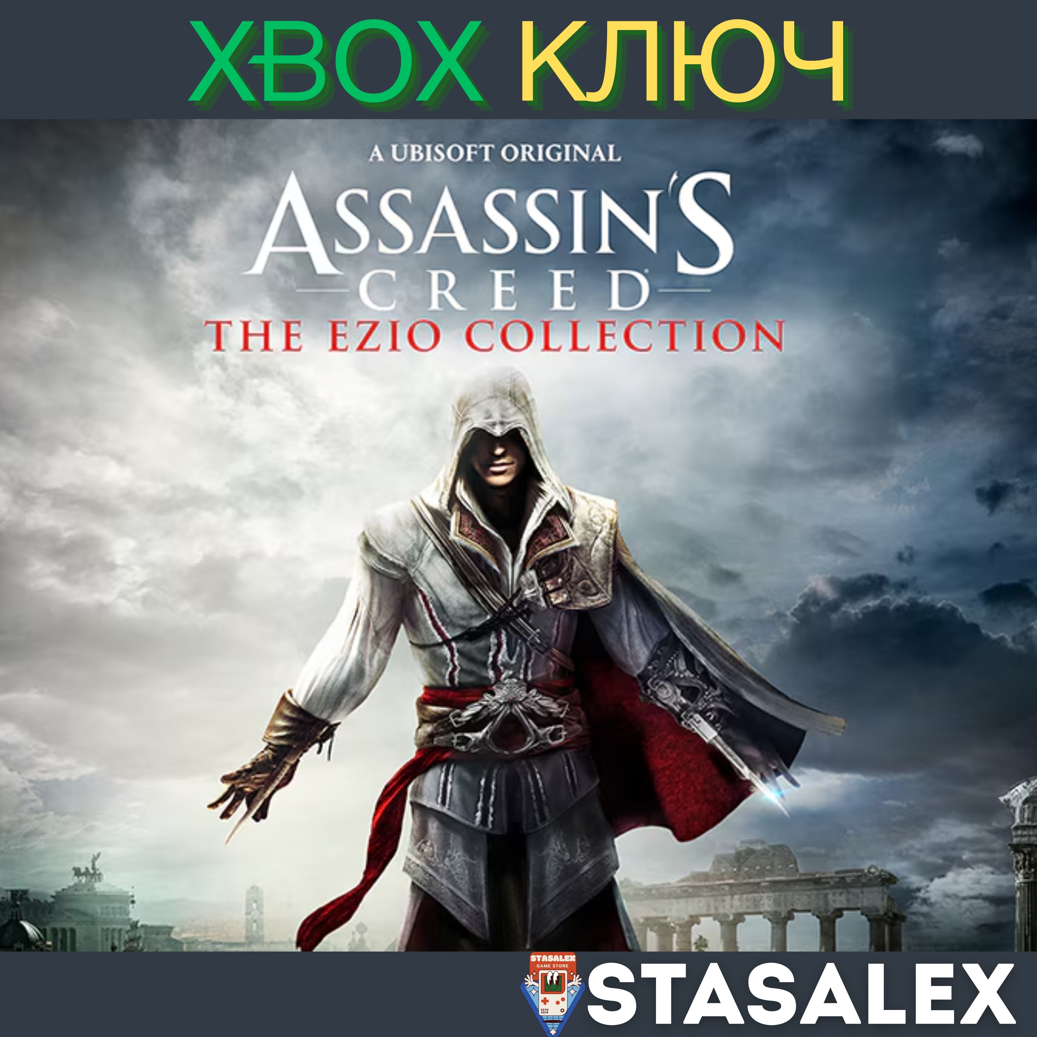 Творите историю вместе с ассасином Эцио Аудиторе – играйте в обновленные версии Assassin’s Creed 2, Assassin’s Creed Братство Крови и Assassin’s Creed Откровения, а также все DLC к этим играм. Узнайте больше о легендарном мастере-ассасине благодаря 2 короткометражным фильмам «Embers» и «Lineage».