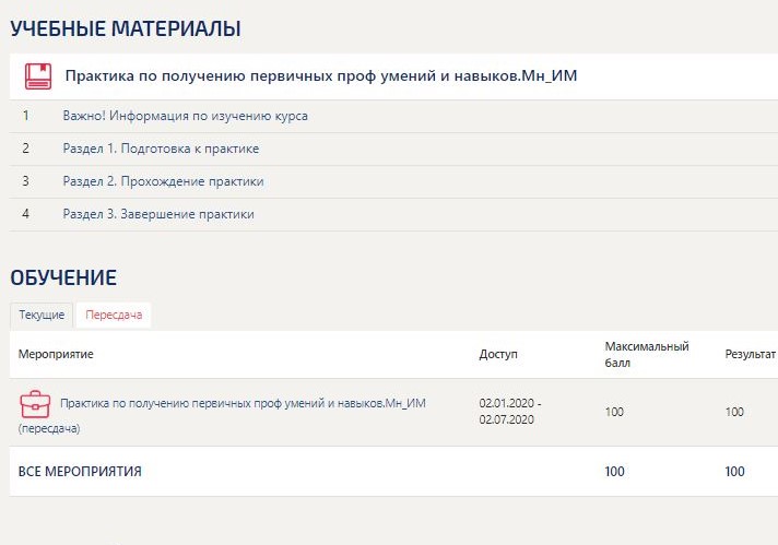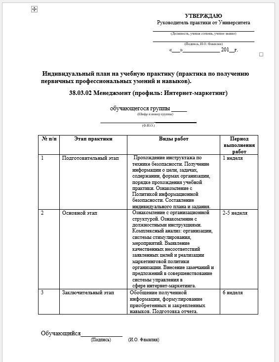 Индивидуальный план на учебную практику (практика по получению первичных профессиональных умений и навыков).
