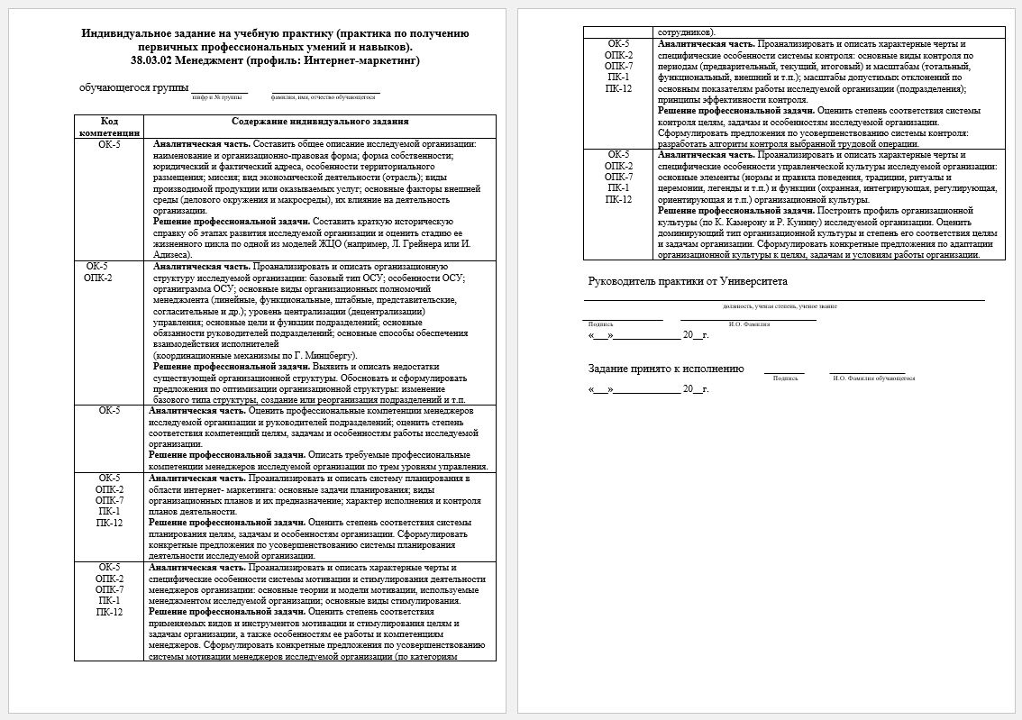 Индивидуальное задание на учебную практику (практика по получению первичных профессиональных умений и навыков).