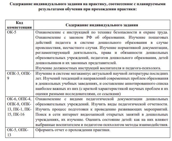 Ознакомление с видами педагогической документации дошкольных образовательных учреждений. Изучить виды педагогической отчетности. Изучить процесс подготовки к проведению развивающих мероприятий. Поиск в сети интернет видеозаписей открытых занятий в дошкольных учреждениях, их изучение. Оценить состояние детей: как на них влияют выбранные воспитателем и педагогом-психологом методы взаимодействия.