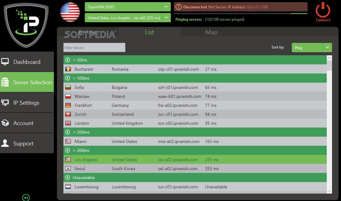 Активное VPN-соединение изменяет ваш IP-адрес и ваше видимое местоположение на ловушки, предоставляемые IPVanish. Вы можете запретить онлайн-маркетологам, поисковым системам и веб-сайтам анализировать и использовать ваш IP-адрес или местоположение.