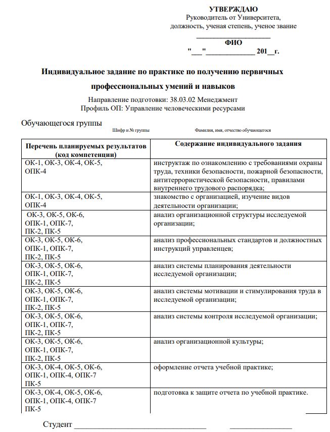 Индивидуальное задание по практике по получению первичных профессиональных умений и навыков